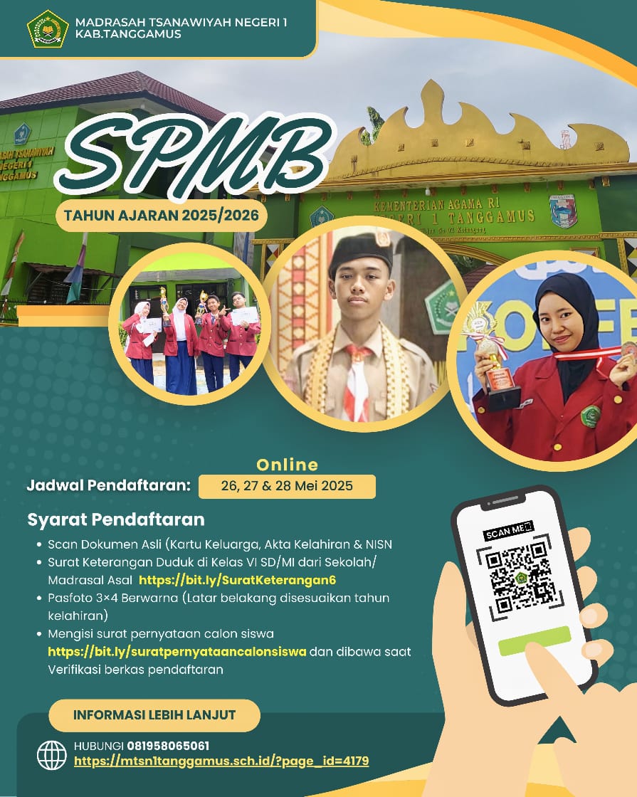 SPMB Kelas Reguler MTsN 1 Tanggamus Tahun Ajaran 2025/2026